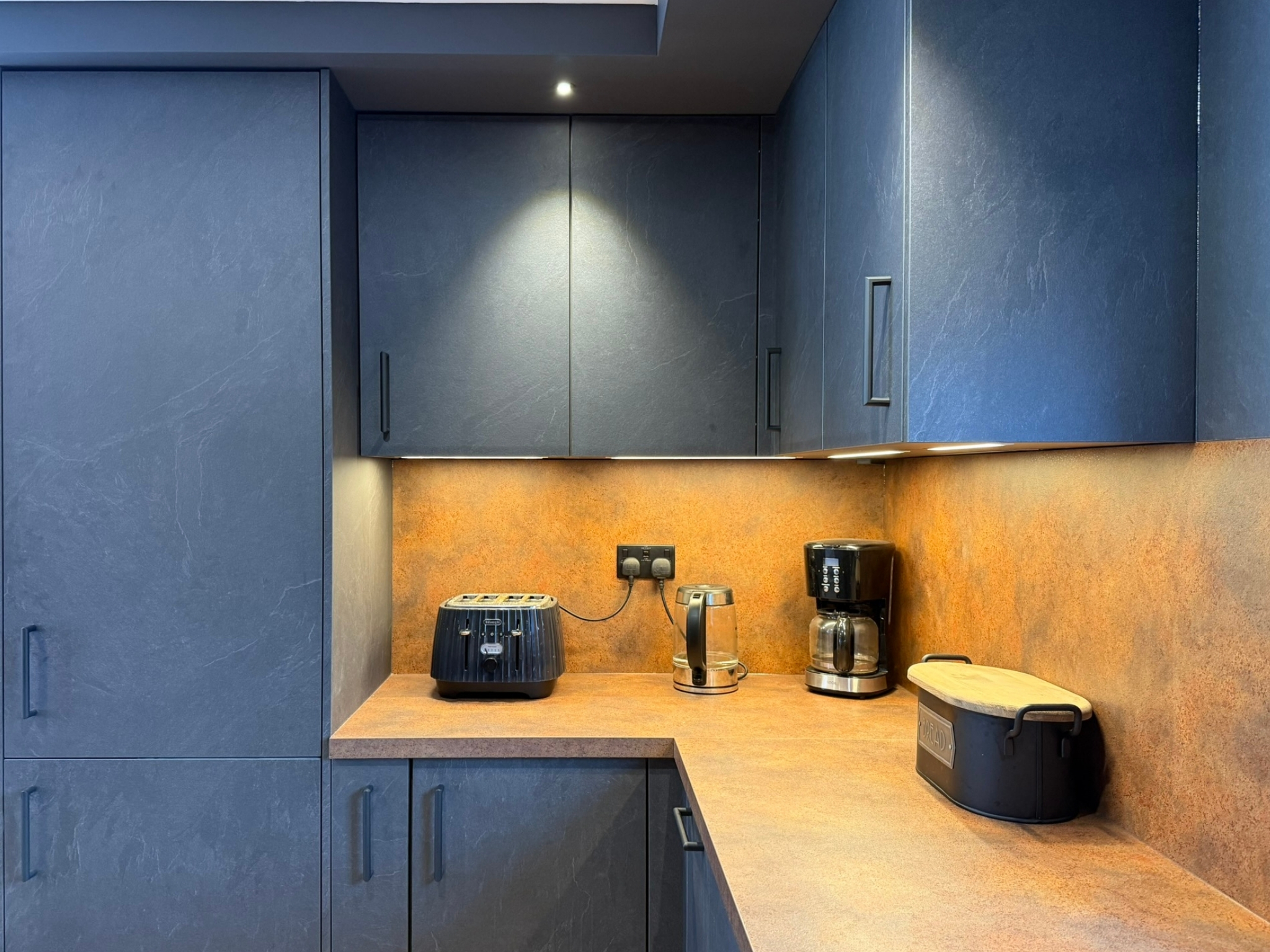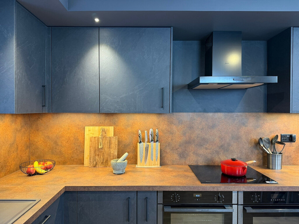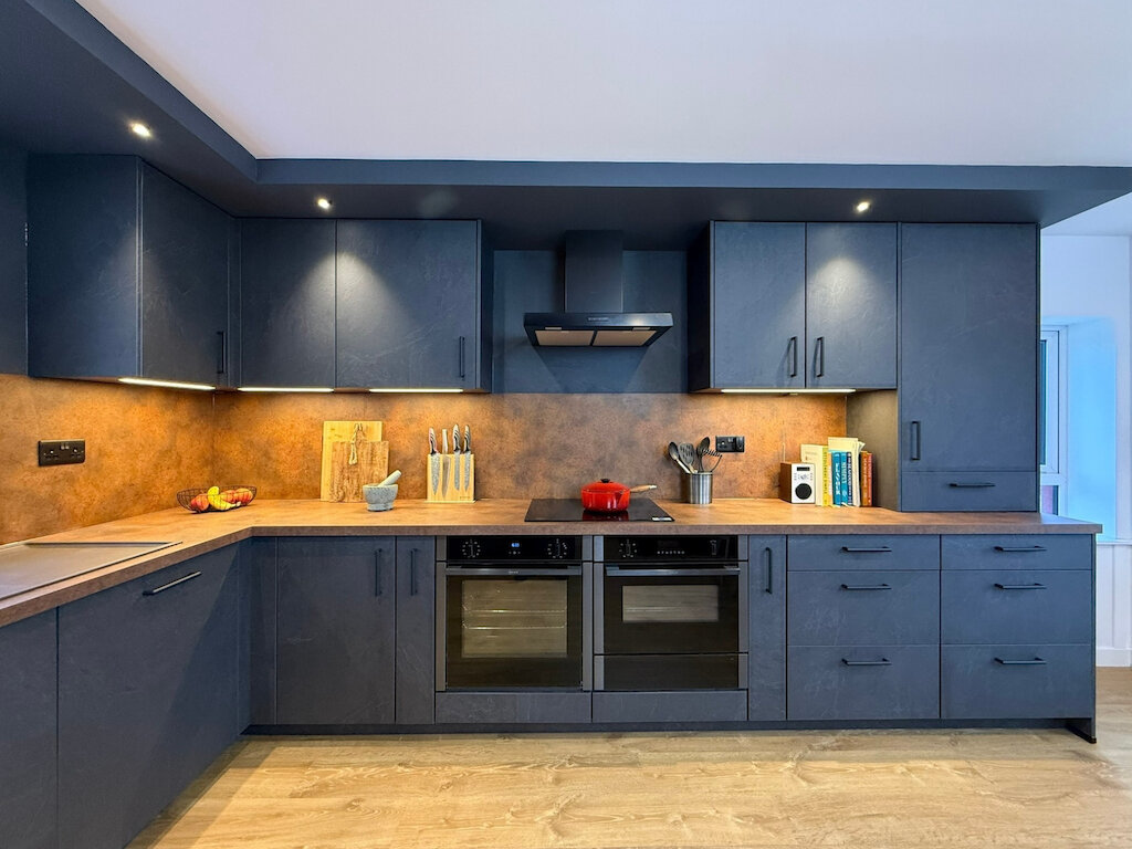 The finished space is a confident and characterful interior that perfectly reflects the client’s vision - combining industrial textures, modern design, and practical storage solutions into a truly bespoke result.